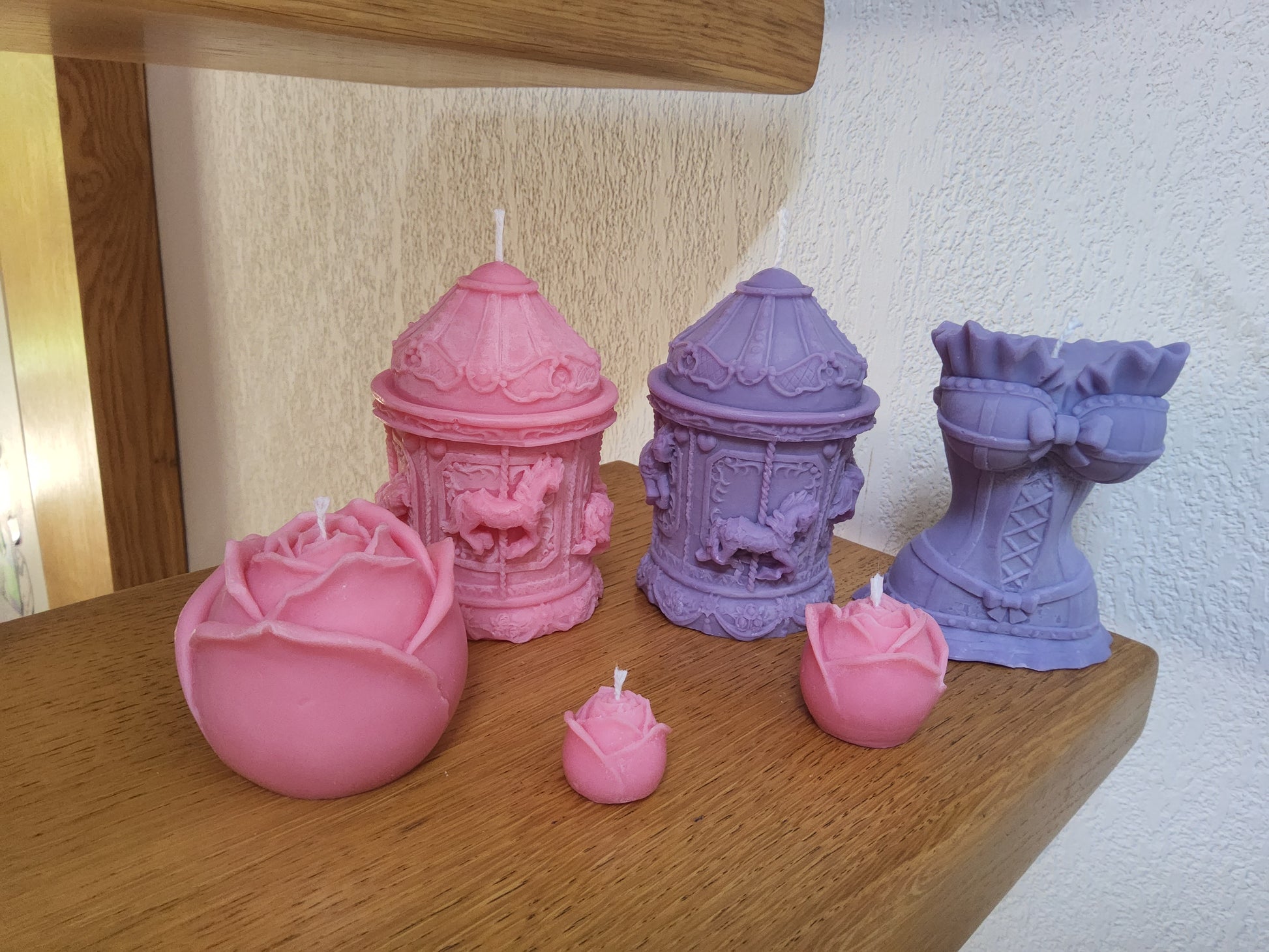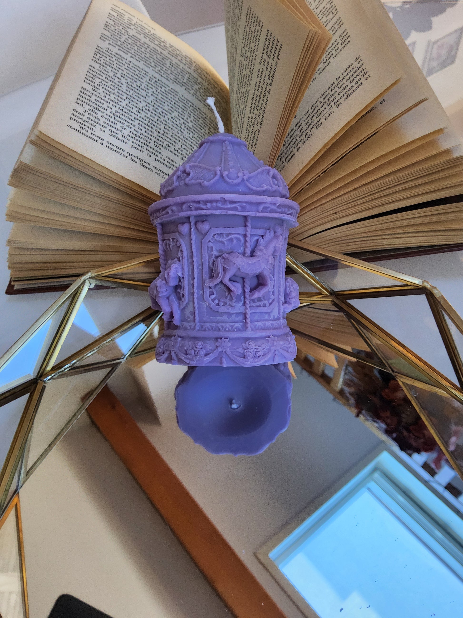La Bougie Caroussel est un peu romantique car elle nous fait penser aux vieux manèges qui étaient si beaux avec leurs chevaux de bois et souvent recouvert de dorure.